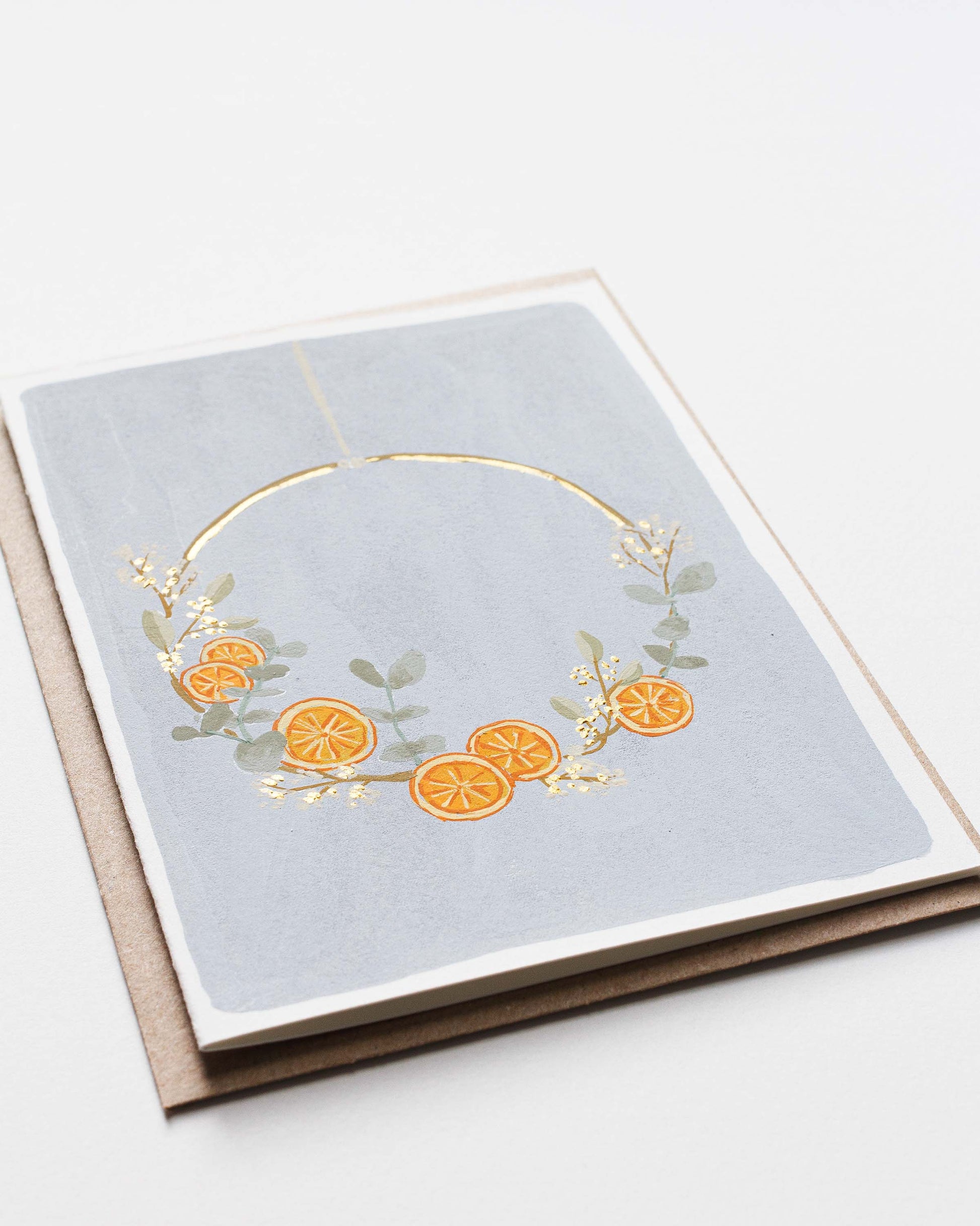 ORANGES HOLIDAY WREATH - Original Painting/Card